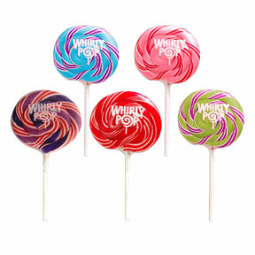 These beautifully crafted, brightly colored Whirly Pops are sure to impress! Available in the following swirls of color: rainbow, pink, purple, red, green, and blue.